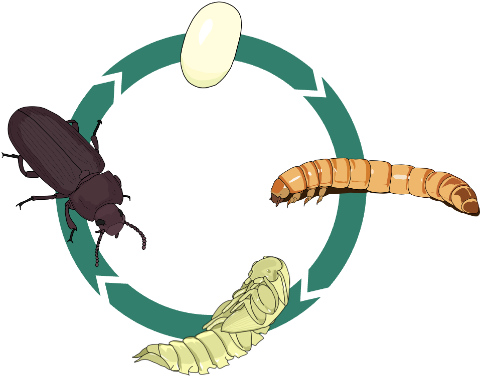 Mehlwürmer sind die Larven des Schwarzkäfers. Sie zeichnen sich durch einen schnellen Lebenszyklus aus und können viele Nebenströme aus der Lebensmittelindustrie als Futter verwerten und zu hochwertige, tierischen Proteinen aufwerten.